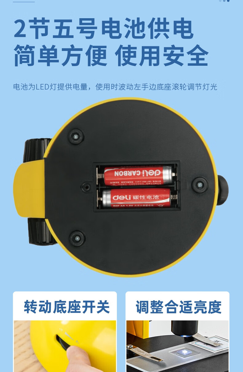 得力/deli 74340 生物顯微鏡 科普顯微鏡兒童玩具學(xué)生便攜式男女孩玩具小學(xué)生孩子生日節(jié)日禮物禮盒74340(黃)