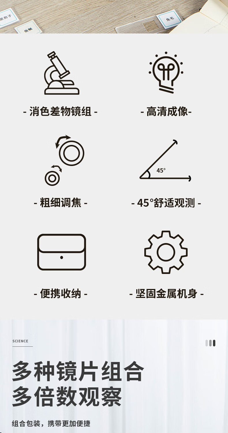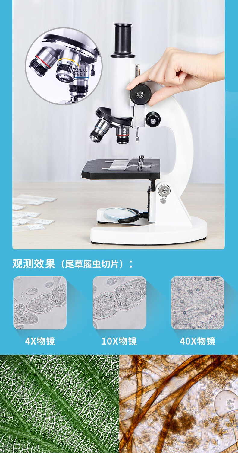 得力(deli)74360單目生物顯微鏡640倍專業(yè)高清小學(xué)初中生中考教學(xué)兒童生日禮物 銀色HY