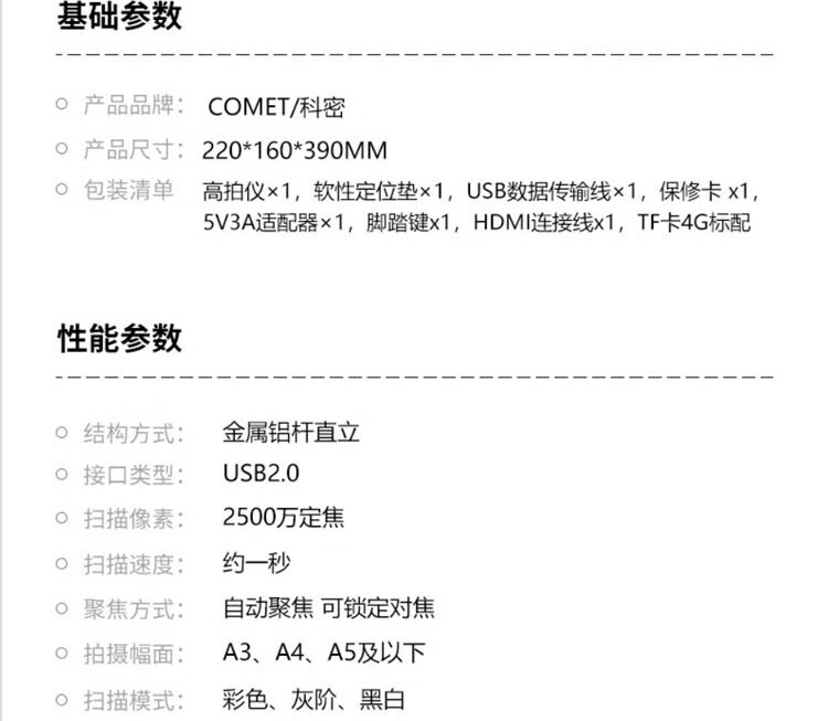 科密(comet) GP2318Z高拍儀 2500萬像素 可在線升級(jí)掃描儀 A3A4文件資料照片證件 HDMI接口 書籍展平成冊