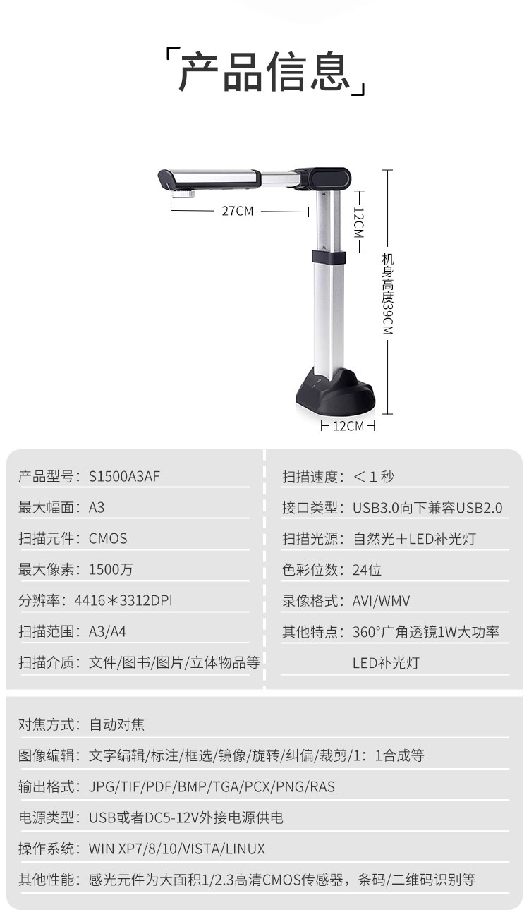 良田/eloam S1500A3AF 高拍儀 視頻展臺 高速掃描儀 1500萬像素A3掃描自動對焦合同票據(jù)照片掃描
