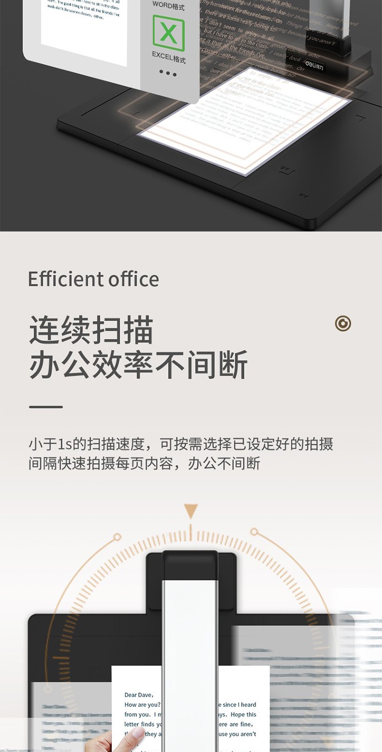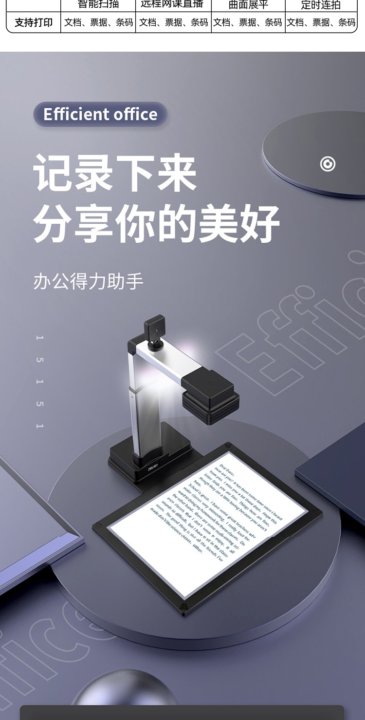 得力/deli 15157 高拍儀 A4/A3幅面高清高速掃描儀帶身份證識別文件試卷檔案高速掃描儀圖文轉(zhuǎn)換 1500萬像素自動對焦高清投影 A4幅面15157