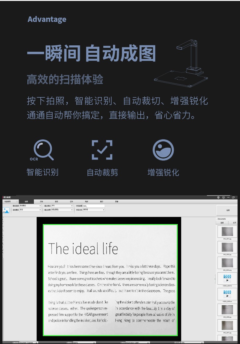 得力/deli 15161 高拍儀 智能高拍儀A3高清高速掃描儀1200萬像素 商用辦公文件文檔試卷資料 自動(dòng)對(duì)焦掃描儀
