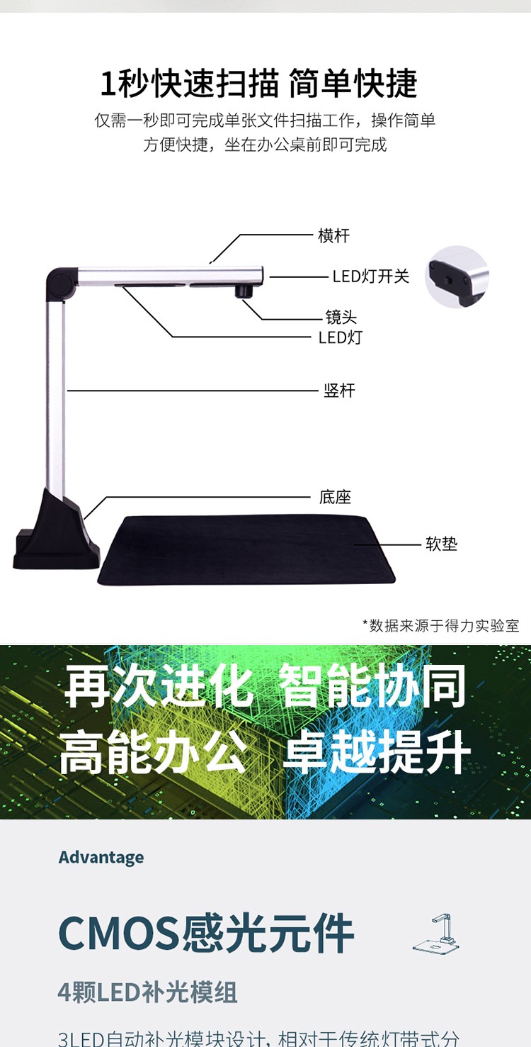 得力/deli 15154 高拍儀 智能高拍儀A4/A3幅面高清高速掃描儀帶身份證識別文件試卷檔案高速掃描儀圖文轉(zhuǎn)換 1800萬自動對焦高清連拍 A3幅面