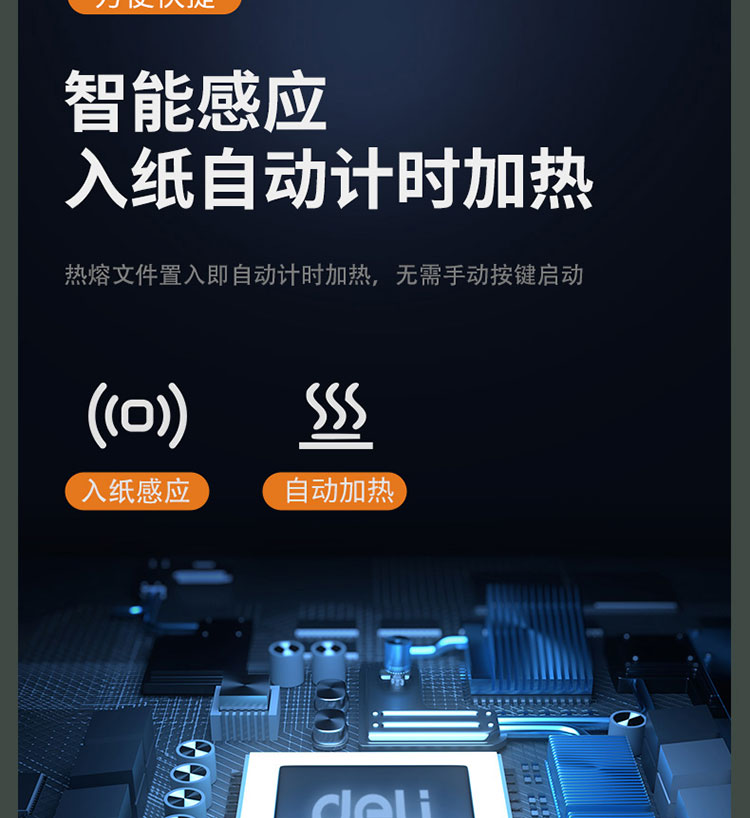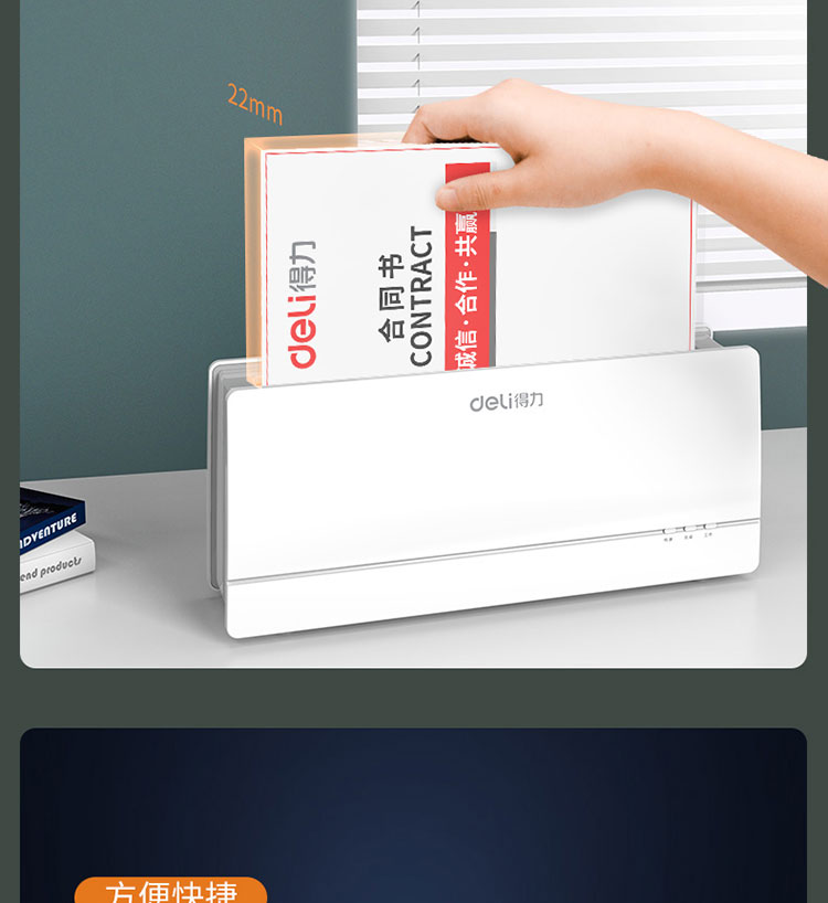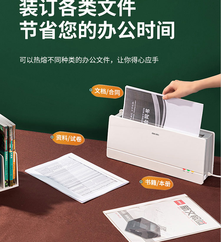 得力(deli)22mm合同標(biāo)書檔案文件熱熔膠裝機 熱熔財務(wù)憑證裝訂機 無損膠裝 智能溫控 14672