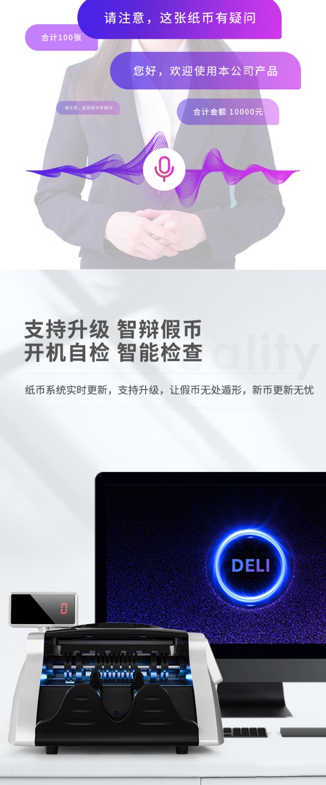 得力(deli) 點(diǎn)鈔機(jī)驗(yàn)鈔新版人民幣銀行專(zhuān)用小型便攜式點(diǎn)鈔儀數(shù)錢(qián)合計(jì)C類(lèi)語(yǔ)音播報(bào)全自動(dòng)商用辦公家用 新版雙屏智能點(diǎn)鈔機(jī)