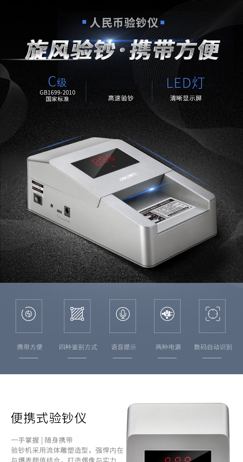 得力/deli 2116 點(diǎn)鈔機(jī) 小型點(diǎn)驗(yàn)鈔機(jī)語音便攜式家用精準(zhǔn)驗(yàn)鈔儀 電池+外接電源 小功率