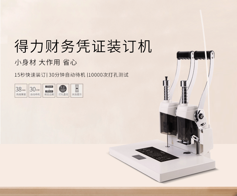 得力(deli) 3877A 熱熔憑證裝訂機(jī) 財(cái)務(wù)辦公 閃電裝訂38mm