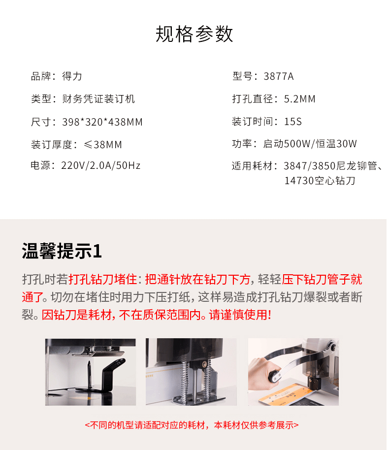 得力/deli 3877A 裝訂及打孔類 熱熔憑證裝訂機(jī) 財(cái)務(wù)辦公 閃電裝訂38mm