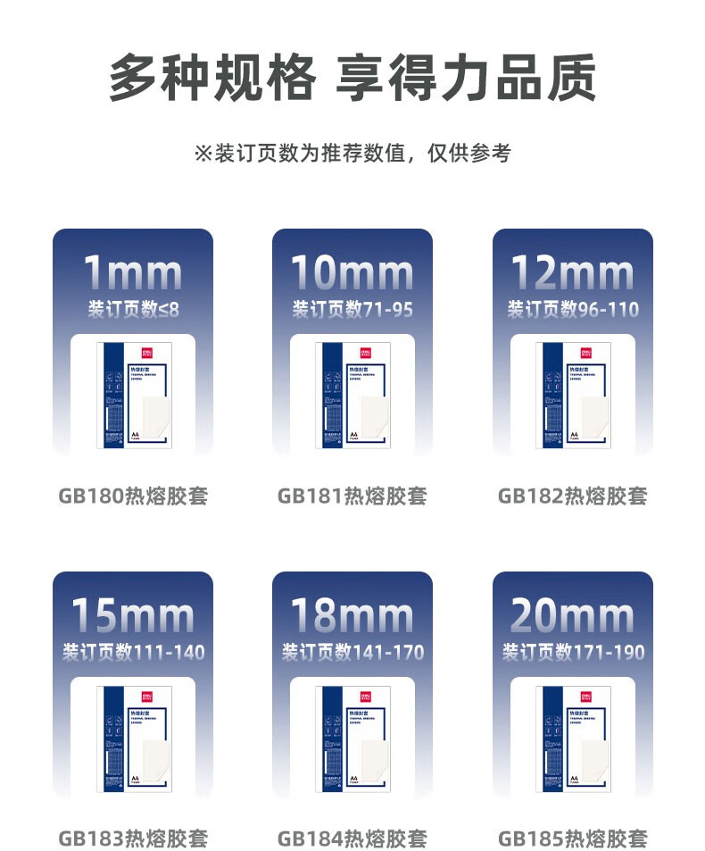 得力(deli) 熱熔財(cái)務(wù)裝訂機(jī) 合同標(biāo)書檔案資料文件膠裝機(jī) (可裝訂50mm)高端熱熔裝訂機(jī)