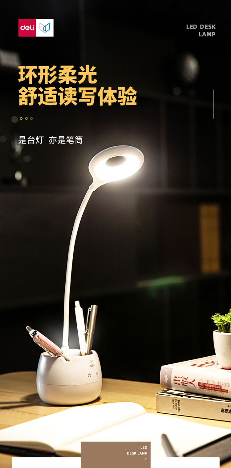 得力/deli 4326 臺(tái)燈/壁燈/床頭燈/落地?zé)?帶筆筒創(chuàng)意臺(tái)燈 3檔調(diào)節(jié)可當(dāng)夜燈 開學(xué)升學(xué)季禮物
