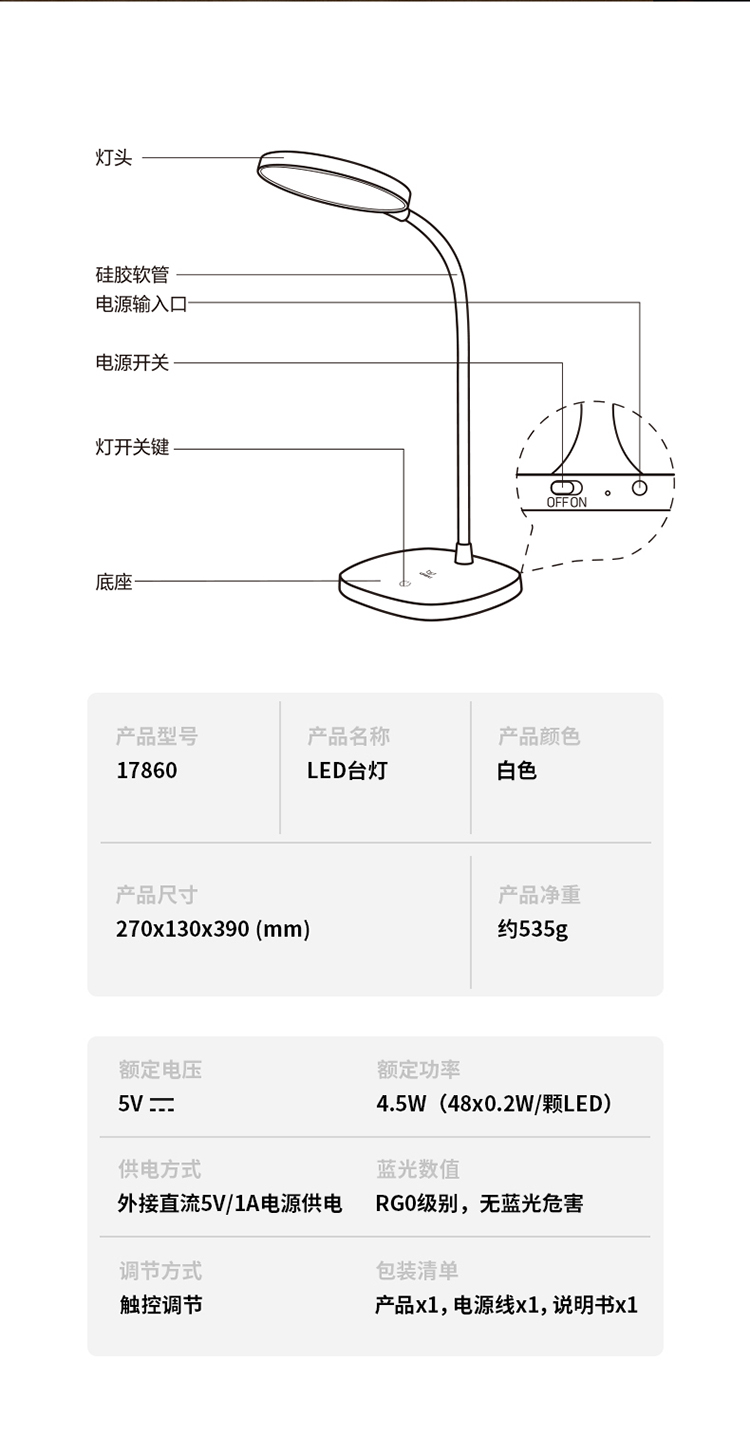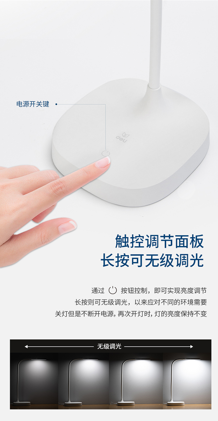得力/deli 17860 臺燈/壁燈/床頭燈/落地?zé)?LED燈無藍(lán)光臺燈 無極調(diào)光辦公學(xué)習(xí)夜燈 直插式