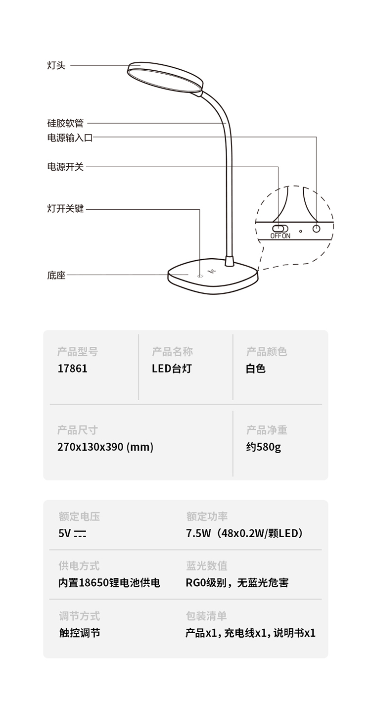 得力/deli 17861 臺燈/壁燈/床頭燈/落地?zé)?鋰電池LED無藍光臺燈 無極調(diào)光辦公學(xué)習(xí)夜燈 開學(xué)升學(xué)季禮物 充電式