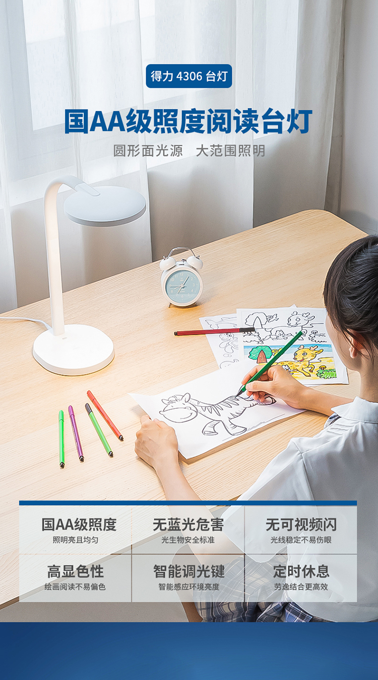 得力(deli)AA級減藍(lán)光護(hù)眼臺燈LED臺燈 智能感光工作閱讀學(xué)生學(xué)習(xí)臺燈 4306