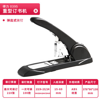 得力(deli) 大號(hào)訂書機(jī) 省力重型訂書機(jī) 加厚大型訂書器 0395黑色可訂210張紙