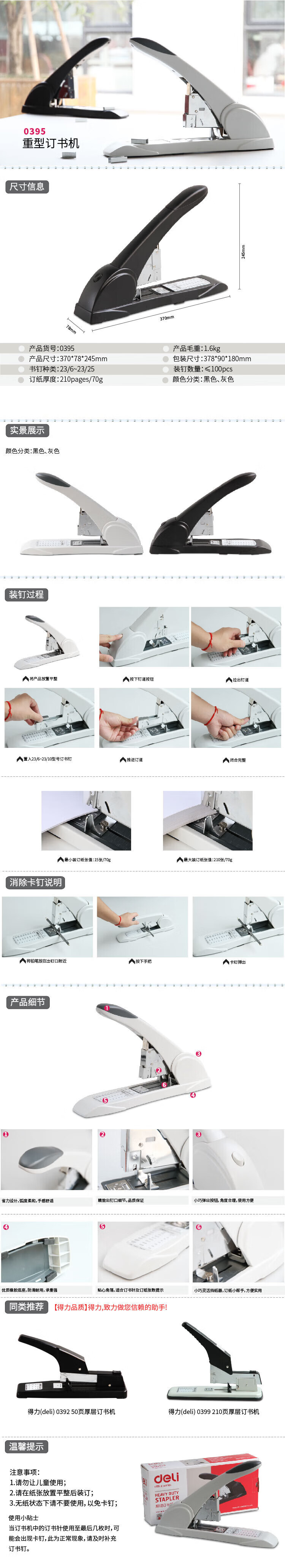 得力/deli 0395 裝訂及打孔類 大號(hào)訂書機(jī) 省力重型訂書機(jī) 加厚大型訂書器 0395黑色可訂210張紙