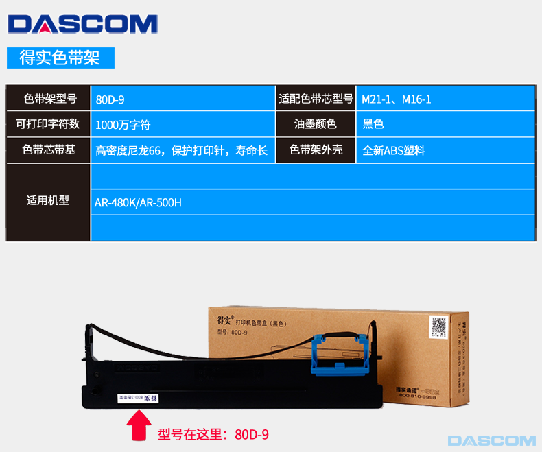 得實(shí)/DASCOM 80D-9 色帶、碳帶 適用AR-480K\AR-500H\DS-610H\DS-630H
