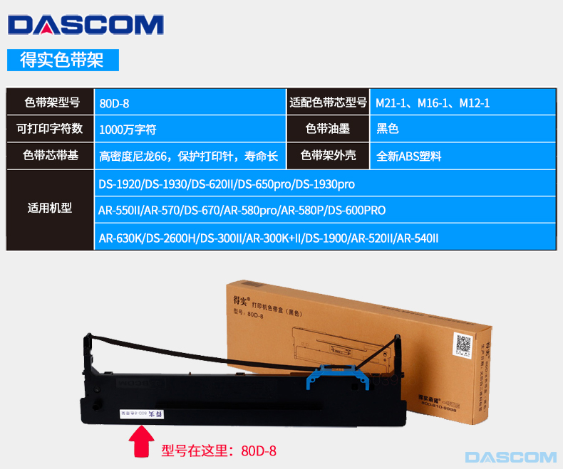 得實(shí)/DASCOM 80D-8 色帶、碳帶 適用于AR-630K/DS-1920等型號(hào)(更多適配型號(hào)見商品介紹)