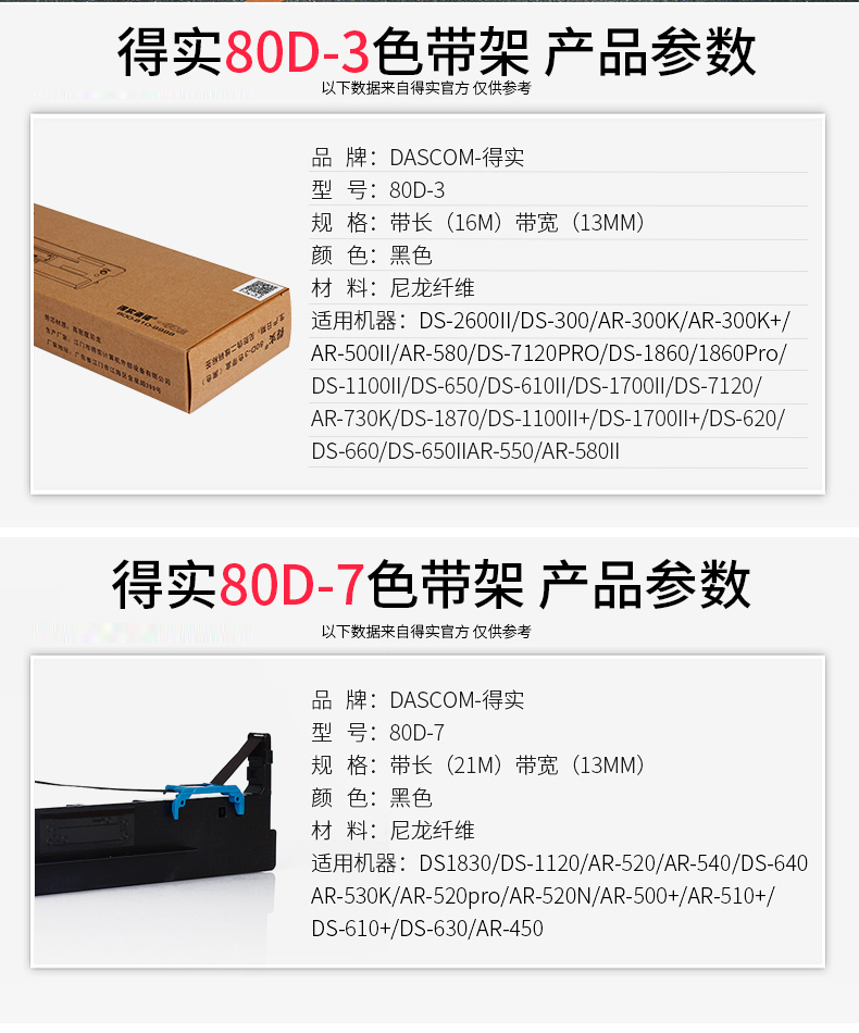 得實(shí)(Dascom)原裝色帶架 適用DS-650 620 610II AR-550 730k 打印機(jī) 單支M21-1色帶芯(21米)需裝在舊色帶架上使用