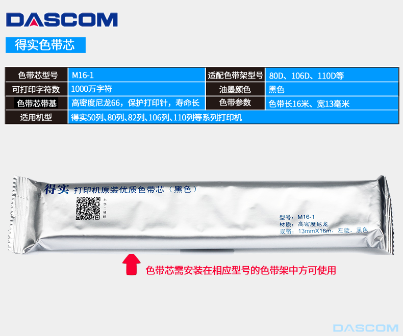 得實(shí)/DASCOM M16-1 色帶、碳帶 芯 得實(shí)耗材 DS1100II DS1700II AR730