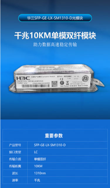 華三/H3C SFP-GE-LX-SM1310-D 網(wǎng)絡(luò)連接設(shè)備 千兆單模雙纖光模塊(1310nm,10km,LC) 華三光模塊單支裝